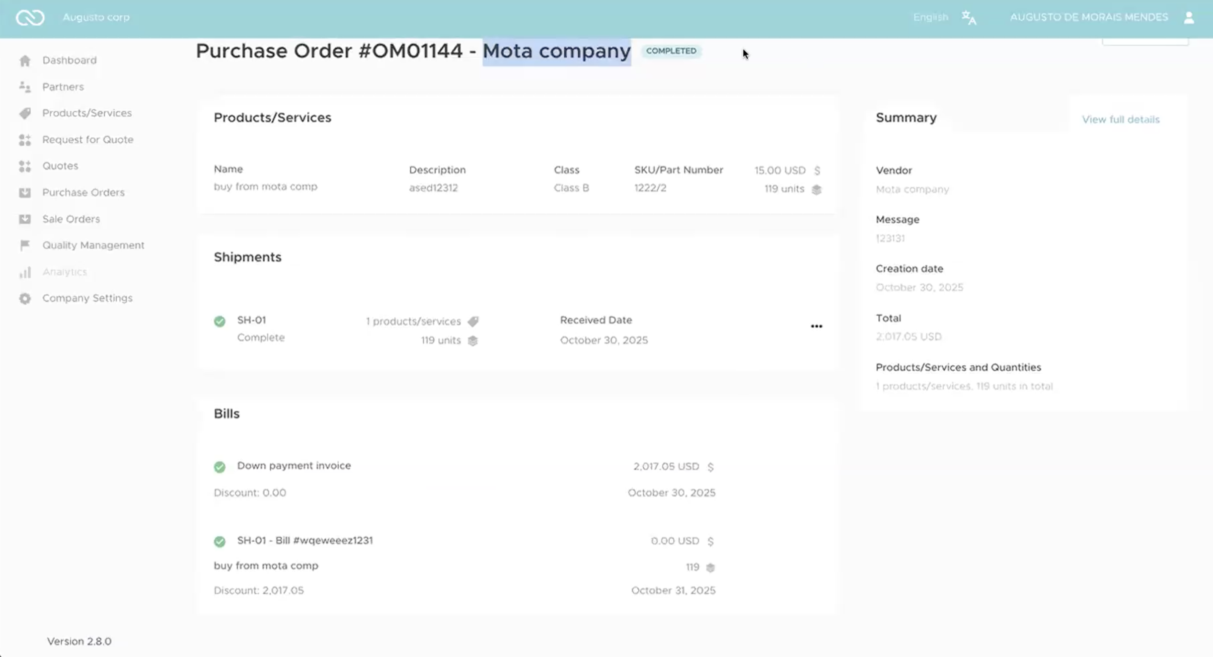 Partial deliveries, returns, or NCRs all sync automatically.